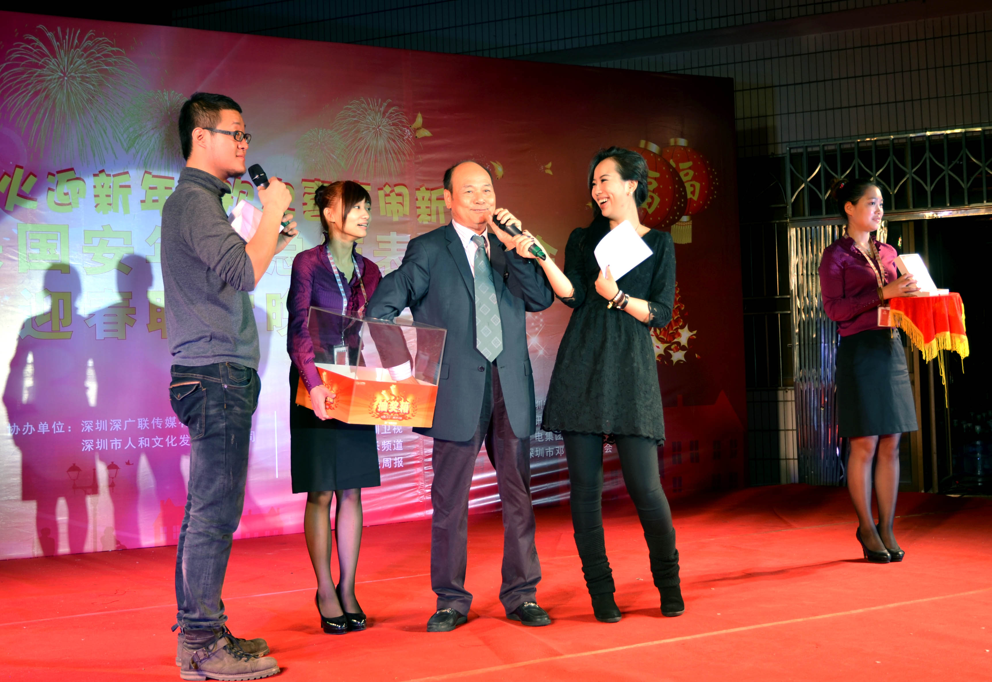 随后举行的迎春联谊晚会在一片祥和、喜庆、欢乐、轻松的氛围中进行,大家高举酒杯,互相祝福。晚会上的歌舞、魔术、朗诵、游戏互动等节目异彩纷呈,穿插在节目中进行的幸运抽奖紧张刺激,吸引了全场所有人的眼球,随着一个个大奖的相继开出,晚会现场气氛达到了高潮。大家在欢乐声中喜迎吉祥蛇年的到来,期待在2013年大有作为,事业迈上一个新台阶。