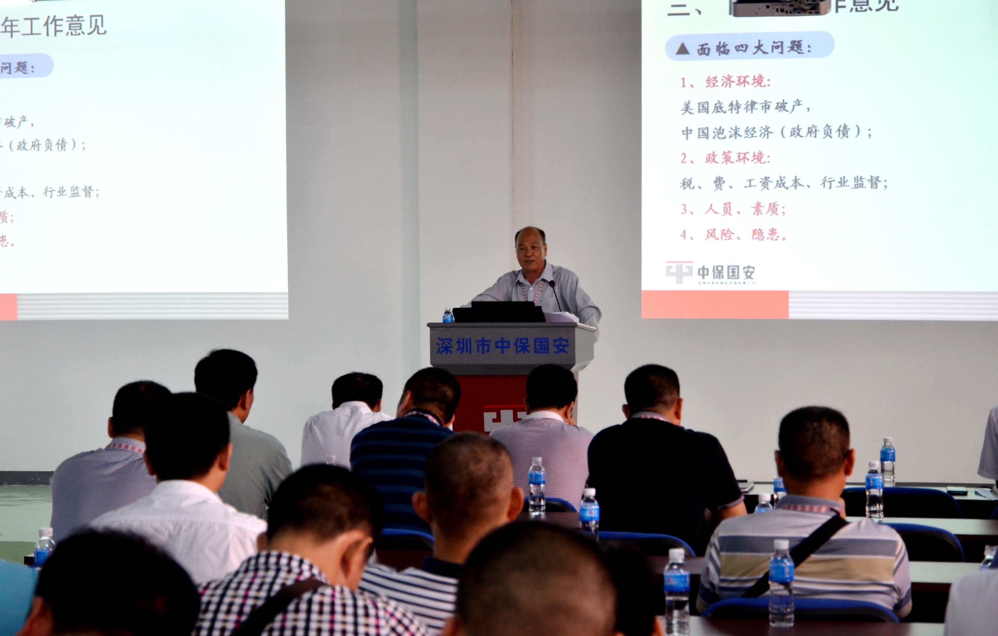 会上,冯道宽董事长首先向公司全体复退军人致以节目的问候,对辛勤工作、默默奉献的一线工作人员、保安人员表示感谢。随后,董事长以《创新求突破、爱拼才会赢》为题做上半年工作总结报告。上半年,公司继续保持良好的发展势头,平台建设、团队建设、规范化建设、企业文化建设、队伍监察、内拓外延、行政管理等各项工作稳步推进、进展顺利,护卫点、总人数、总产值、利润等各项经济指标稳健增长、成果喜人。针对下半年的工作,董事长首先深入剖析了下半年公司发展将面临的经济环境、政策环境、人员素质、风险隐患四大问题,提出正视问题、直面困难,继续“抓创新、抓团队、抓管理、抓业务、抓平台”的工作意见,要求大家坚持创新、抢抓机遇、凝心聚力、奋勇拼搏,争取更大的业绩;保安事业部罗涛经理就上半年队伍管理情况做了通报和分析;刘基新常务副总经理发表关于坚决贯彻《保安服务管理条例》的讲话,提出了加强管理、降低风险、规范经营的若干具体的工作意见。