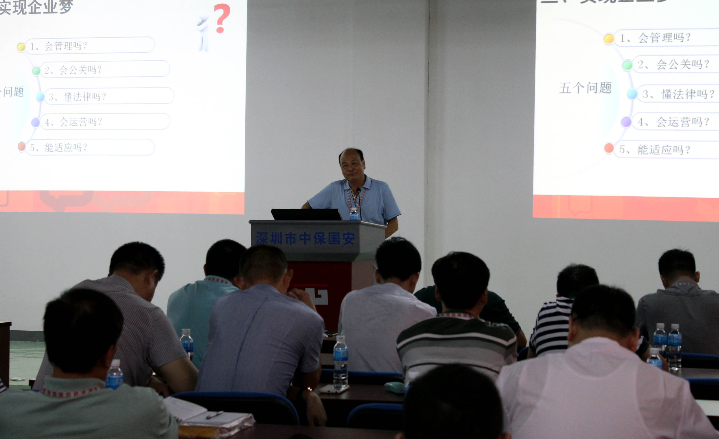 此次培训侧重实用、高效,时间安排紧凑,课程设置更具针对性。培训内容经公司领导反复推敲确定,包括“公司宣传推广”、“保安经营管理相关法律”、“招投标流程、要求及标书制作”、“OA办公自动化系统操作”、陈湛匀视频讲座《企业新生命》。培训形式除一天的集中培训之外,还包括时限一个月的视频教学材料自由学习。