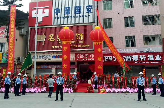 10月8日,韶关分公司在韶关市举行成立揭牌仪式,公司董事长冯道宽、副总经理毕少东、保安事业部经理罗涛、发展部经理杨卫东、监察室主任许光勇及韶关市有关部门的领导、客户代表、纠察队、保安员共400余人出席、参加了揭牌仪式。公司董事长冯道宽和韶关分公司总经理梁初培共同为韶关分公司揭牌。