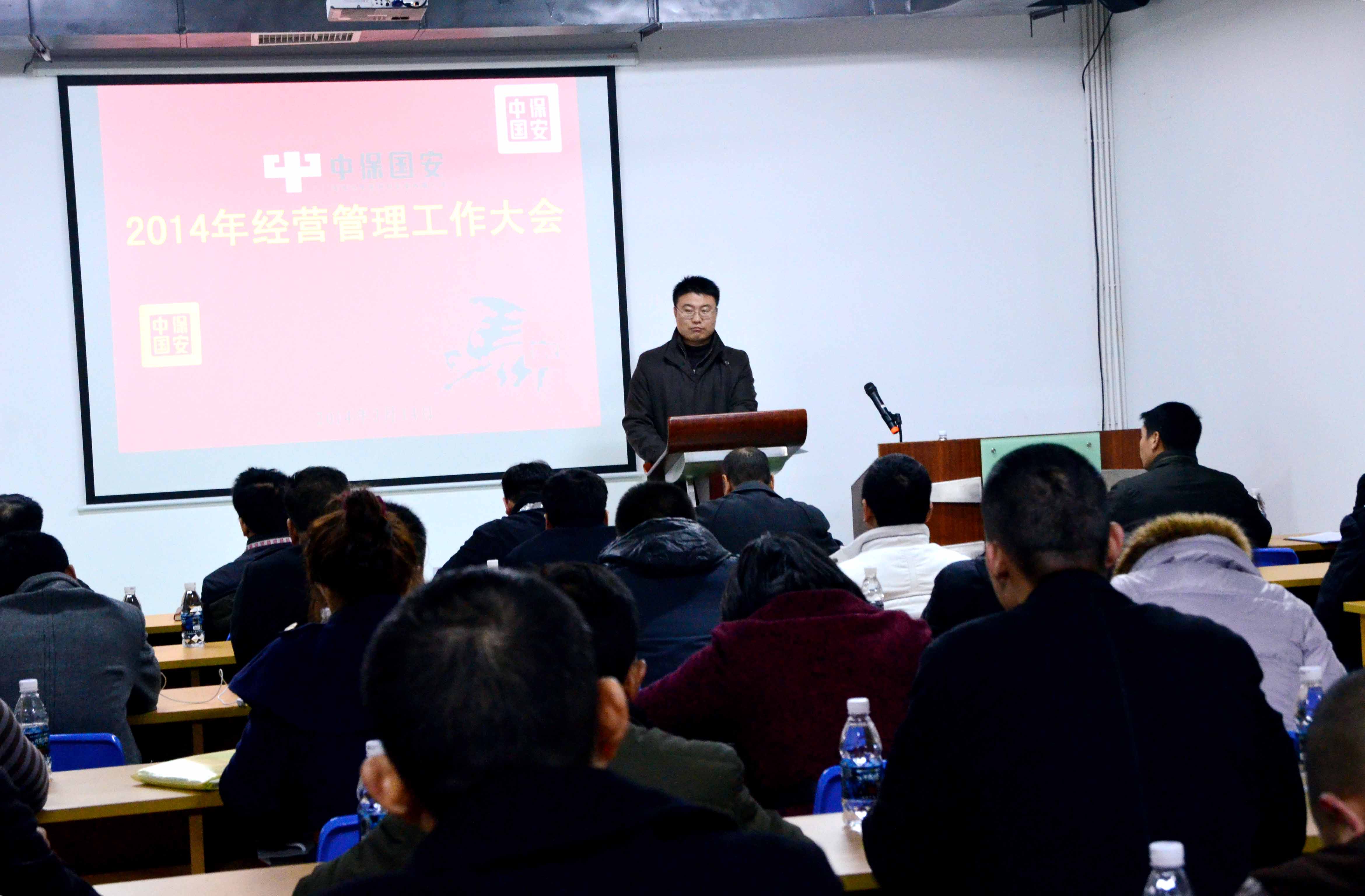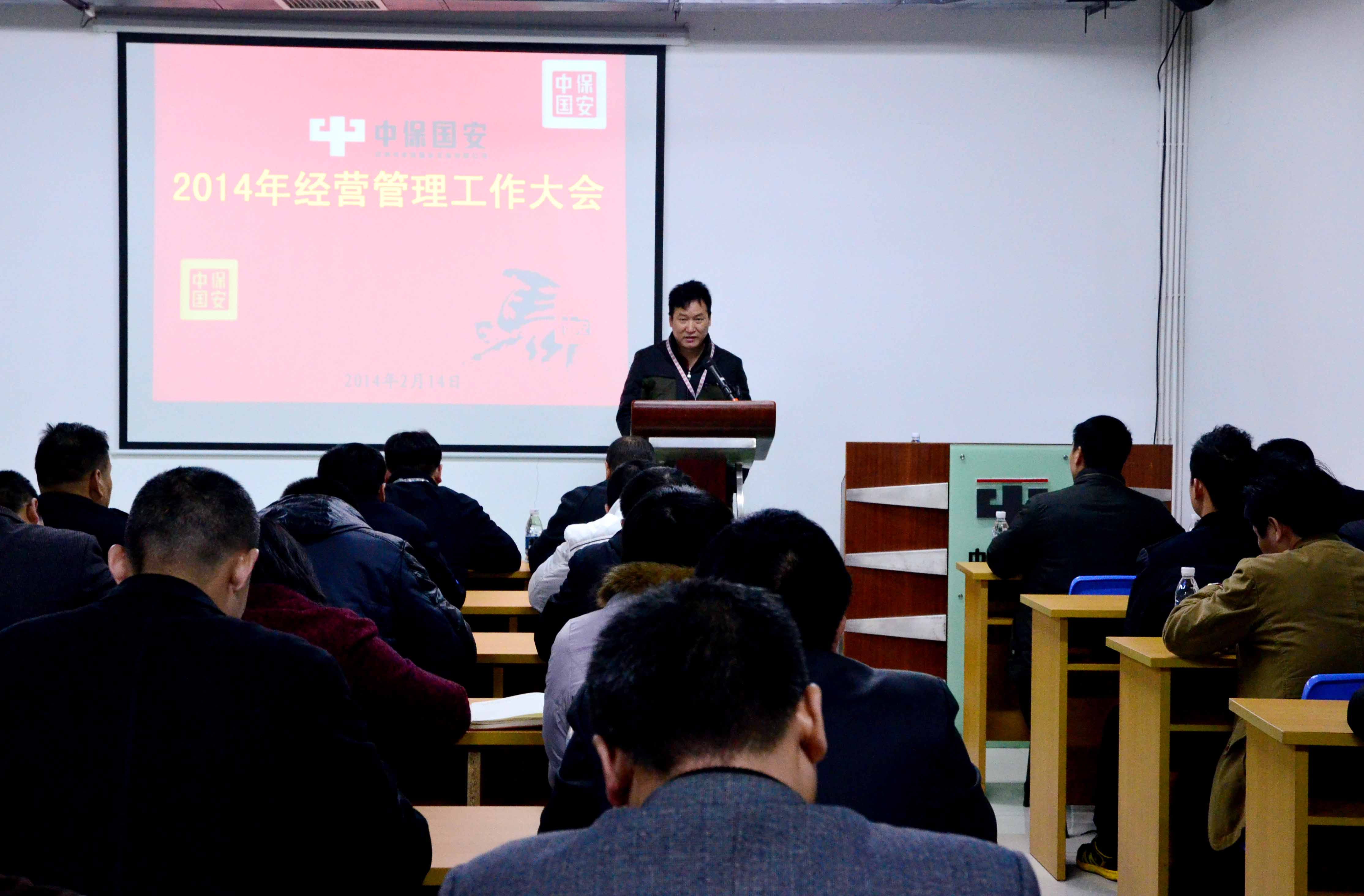 会上,公司领导、保安事业部经理罗涛通报了2014年春节期间公司队伍安全管理的总体情况。春节期间,公司早发通知、早做部署、未雨绸缪、措施得力,近两千个护卫点共发生工伤、意外事件2宗,客户被盗案件1宗、报损金额2.6万元,投诉事件0宗,好人好事29件 (不完全统计),保障了客户单位和保安队伍的安全与稳定,整体上度过了一个平安祥和的春节。春节期间,各部门共走访护卫点1983个、慰问17000余人,为基层队伍送去了节日的祝福,使队员们感到了家的温暖;公司常务副总经理刘基新讲话,部署、安排了2014年公司的整体工作,公布了公司2014年的经济目标和管理目标。2014年,公司将着重做好“完善组织架构,加强团队建设;加强队伍管理,降低经营风险;合理规划布局,加快发展速度;完善薪资福利结构,推行绩效考核管理;规范流程管理,提升服务水平;提升企业文化建设和宣传工作;完善软硬件设施,做好后勤保障”七大方面工作;冯道宽董事长以“发展需登高望远、工作要啃硬骨头”为题发表讲话,分析解读了2014年的形势和任务,着重指出了2014年的工作重心与要求。2014年,在经济形势不容乐观、政策调整压力加大、行业开放竞争激烈、公司内部问题不少的情况下,我们的主要任务是实现经济目标、抓好队伍管理,工作重心是创新治本,转变模式,大力发展人技结合,努力提升服务水平。董事长希望全体员工要有铁人的精神,要有啃硬骨头的决心和勇气,团结一致,快马加鞭,全面推进各项工作有序开展。