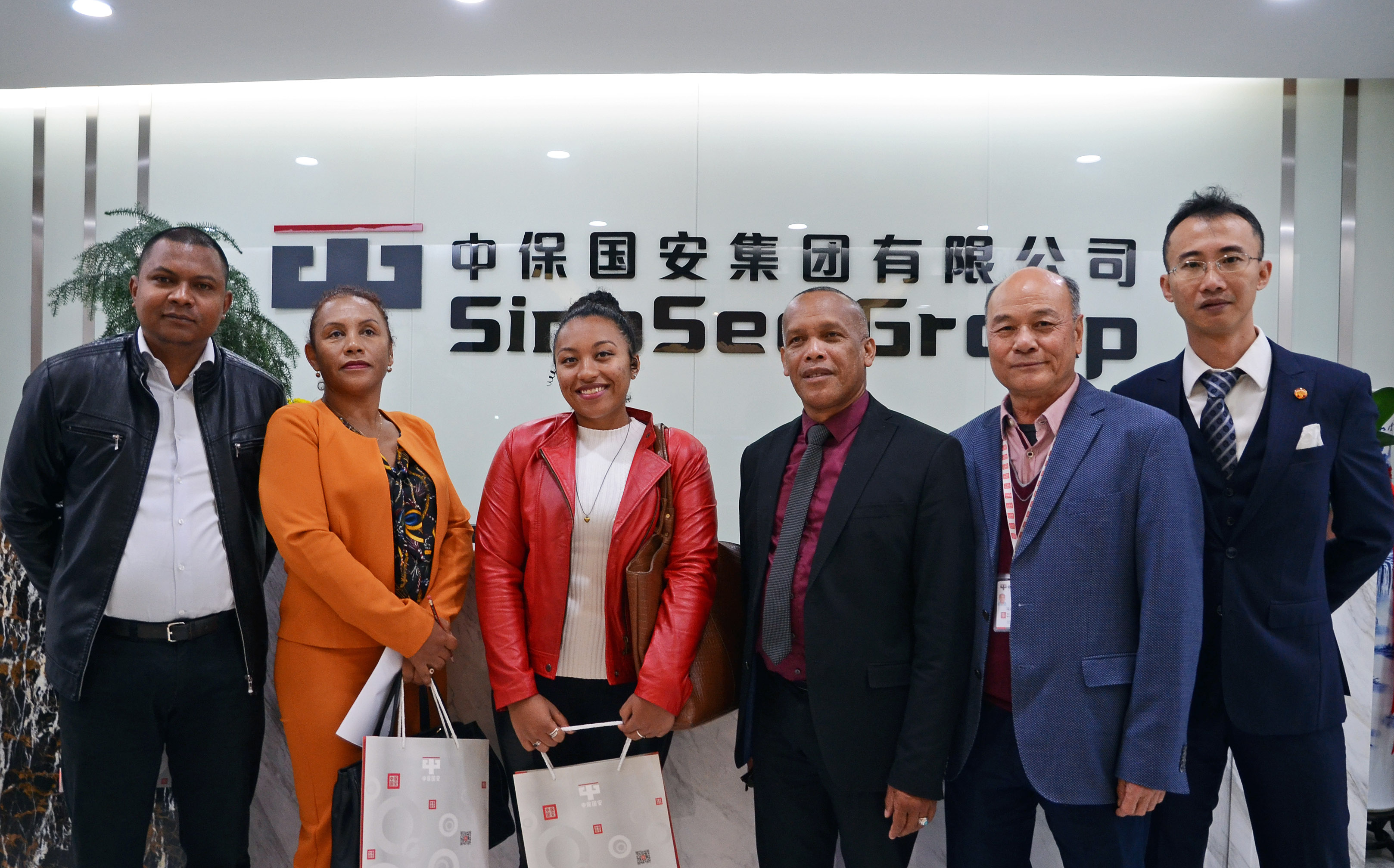 2019年1月8日,非洲岛国马达加斯加共和国国防安全委员会主任利夏勒中将、财政部官员安德烈迪那·亨利先生、国防安全委员会技术员菲欧娜小姐、国防安全委员会财务总监利丽夫人,以及马达加斯加恩利矿业公司董事长黄永逸、总经理吴志雄、李企中等组成的参访团队到访中保国安、中保比讯交流考察。